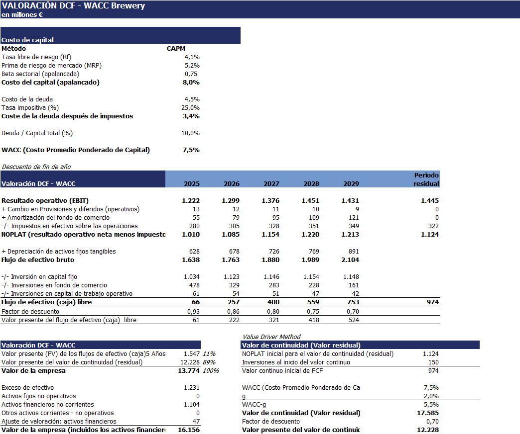- Múltiples métodos de valoración, incluidos tres métodos DCF y el Méthodo de múltiplos